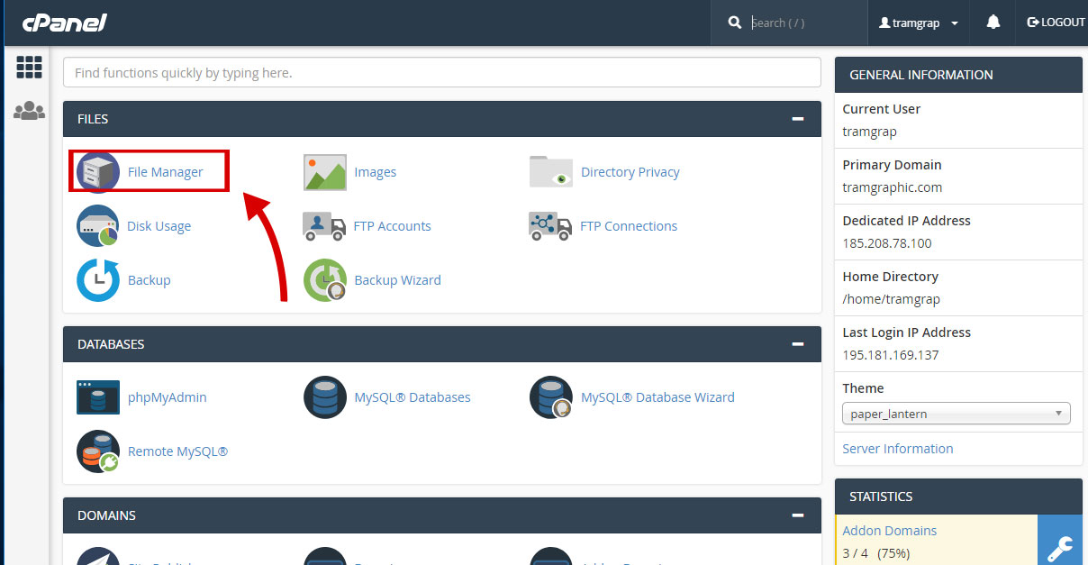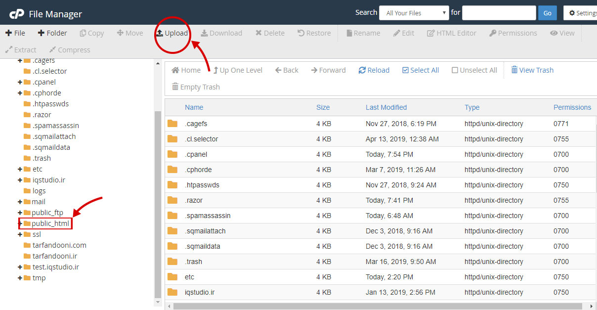 - وارد سرور خود شوید و به بخش file manager سیستم مدیریت سرور (مثل C-panel) بروید.