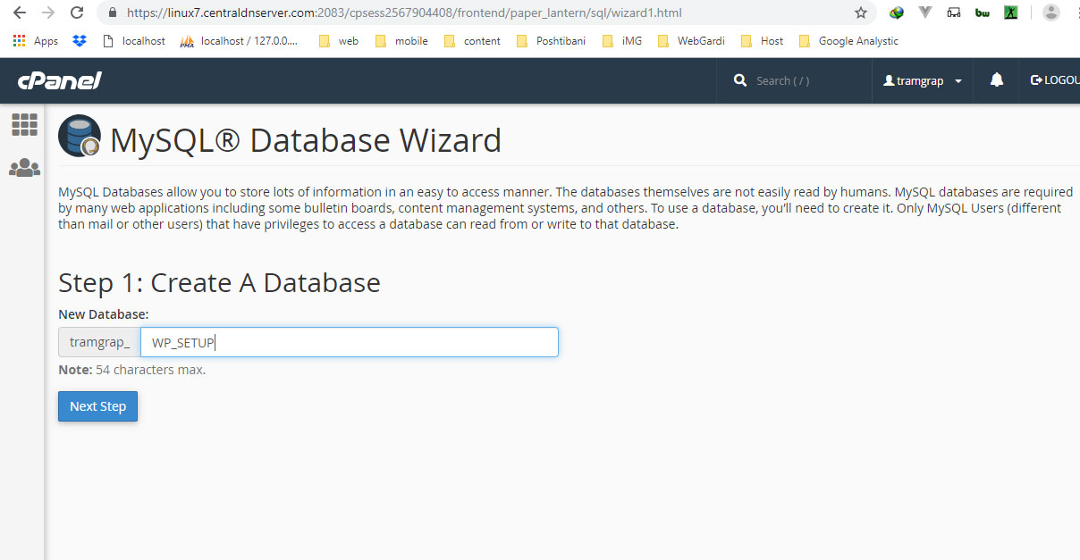 - از منوی MySQL Database سرور خود ،یک پایگاه داده ی جدید بسازید.