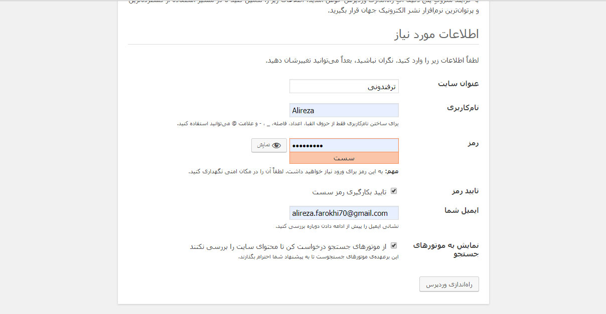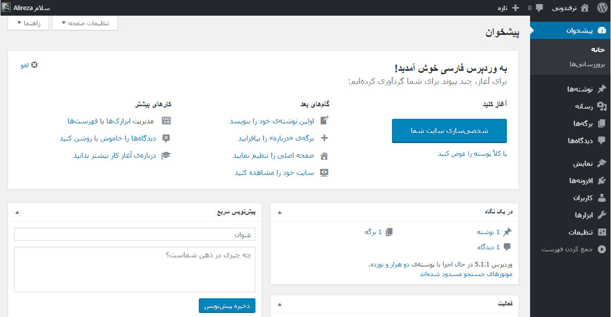- با رمز عبوری که تعریف کردید وارد پنل مدیریت خود شوید. به وردپرس فارسی خوش آمدید.