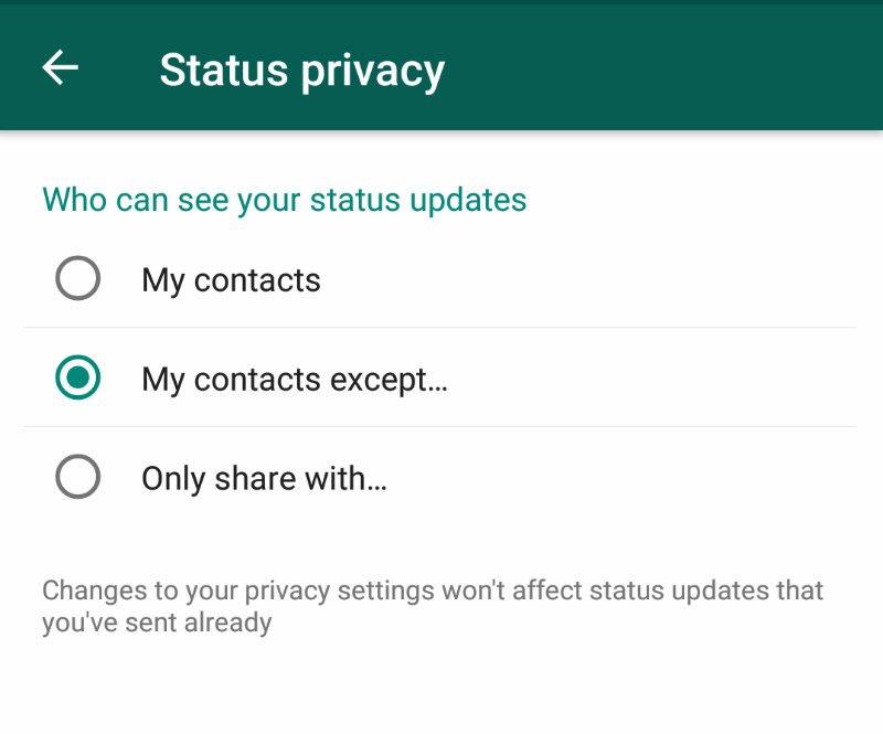 My Contacts Except: به شما امکان می دهد تا مخاطبین خاص را از مشاهده وضعیت خود در لیست سیاه مشخص کنید.