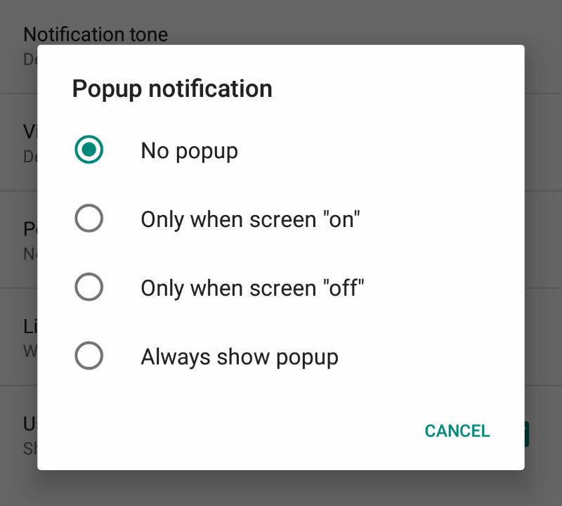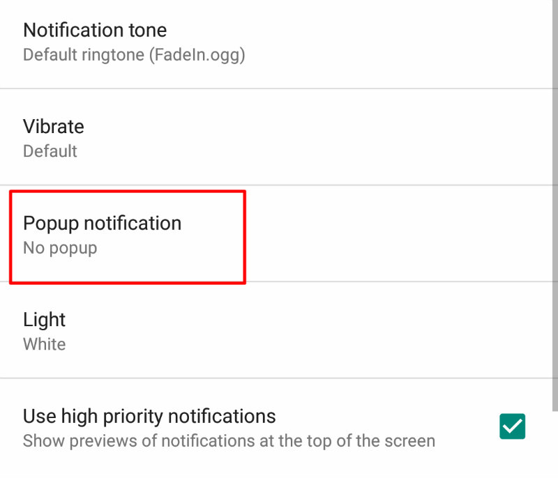 1. به “Settings -> Notifications ->Popup notification بروید.”