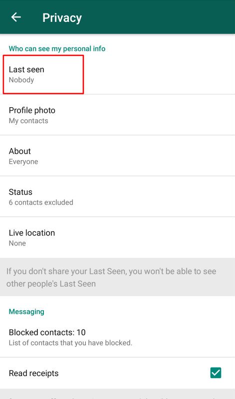 توجه: اگر این ویژگی را غیرفعال کنید ، دیگر قادر به دیدن اخرین بازدید مخاطبینتان نخواهید بود.