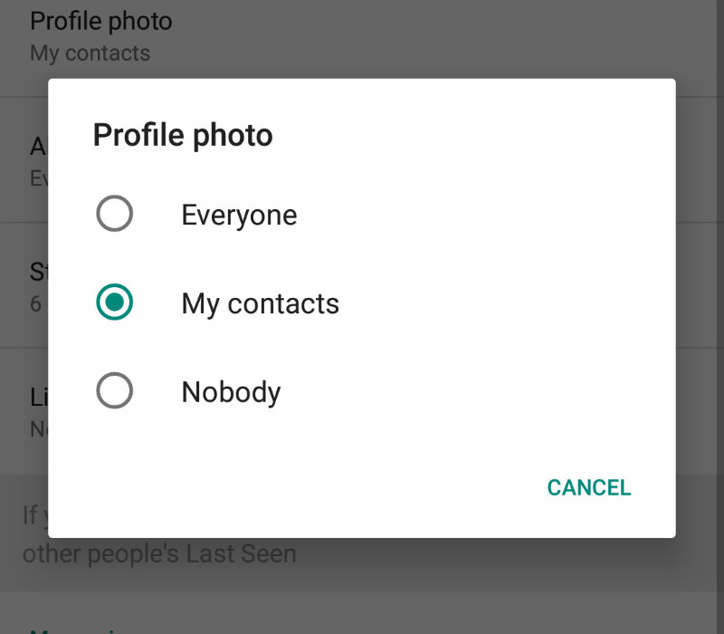 2. “عکس پروفایل” را انتخاب کنید و سطح معمول اجازه خود را تنظیم کنید. “My contacts” را انتخاب کنید تا فقط مخاطبین بتوانند عکس شما را مشاهده کنند.