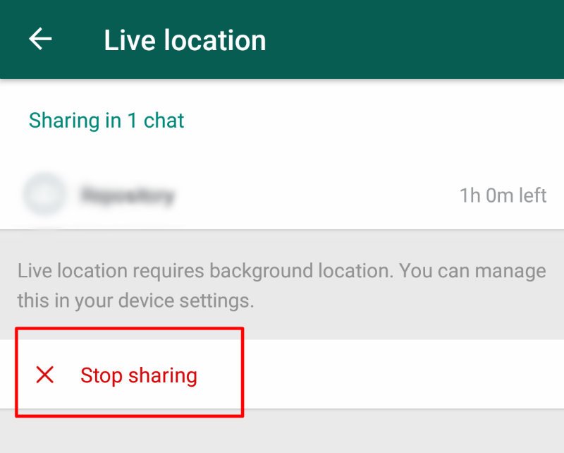اگر در حال حاضر مکان خود را به اشتراک می گذارید ، می توانید آن را از اینجا لغو کنید. برای لغو کلیک بر روی “Stop sharing” کلیک کنید.