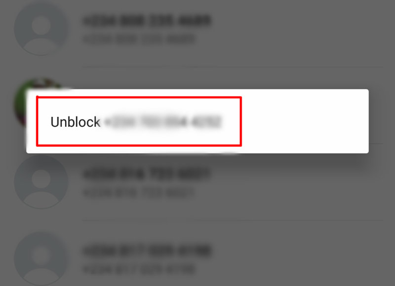 5 .مخاطبی را که می خواهید رفع انسداد کنید ، انتخاب کرده و روند رفع انسداد را کامل کنید