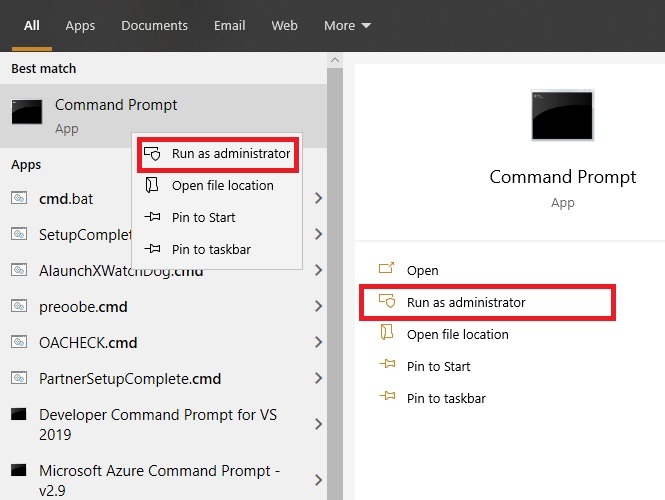 در ویندوز 10 ، به دکمه جستجو بروید و فرمان را به عنوان سرپرست اجرا کنید.