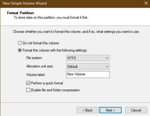 در مرحله بعد پارتیشن را قالب بندی کنید. این ممکن است فقط یک قدم اضافی باشد زیرا شما داده ها را پاک کرده اید. اما همیشه بهتر است که مطمئن باشید.